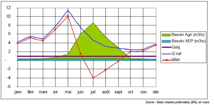 La période d’étiage coïncide donc avec des besoins en eau croissants pour l’irrigation des cultures de juin à octobre (maraichage, arboriculture, etc.), ainsi que pour l’alimentation en eau potable des communes du territoire qui accueillent chaque été, une importante affluence touristique (doublement de la population à l’échelle du département !) notamment sur la zone littorale.