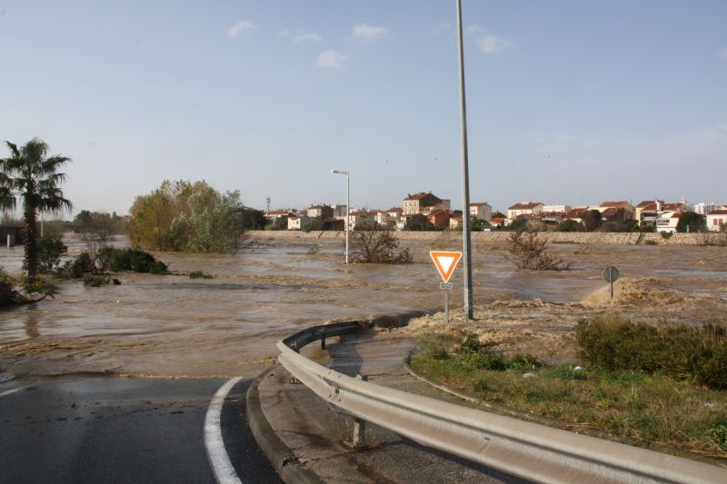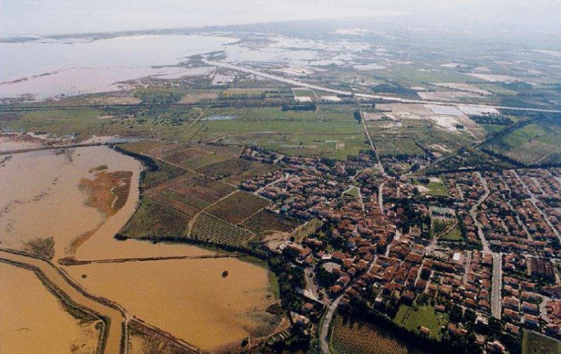 La pluviométrie a principalement affecté la plaine du Roussillon et le piémont, avec un axes de maximum sensiblement Sud Nord (Cf. planche cumul pluviométriques), les plus forts cumuls se localisant notamment à Thuir (413 mm). Avec un débit maximal d’environ 850 m3/s à Perpignan (période de retour 10 ans) cette crue est le fruit d’une contribution forte du bassin aval (avec néanmoins une contribution faible de la part du Boulès) en particulier au regard du fonctionnement en transparence du barrage de Vinça dont les lâchures sont restées comprises entre 90 et 126 m3/s. Cet évènement a provoqué des débordements de tous les cours d’eau aval rive gauche de la zone d’étude. Ainsi, de nombreux villages du secteur aval rive gauche ont été inondés. Ce fût notamment le cas de Corneilla-la-Rivière par le ravin des Coumes, de Pézilla-la-Rivière par le Clot d’en Godail et le ravin de la Berne, Villeneuve-la-Rivière par le ravin de Padrère et le Manadeil et Baho par le Manadeil. L’événement constitue donc une référence pour les affluents avals rive gauche alors que la période de retour estimée pour le débit de la Têt à Perpignan n’est que de 11 ans.