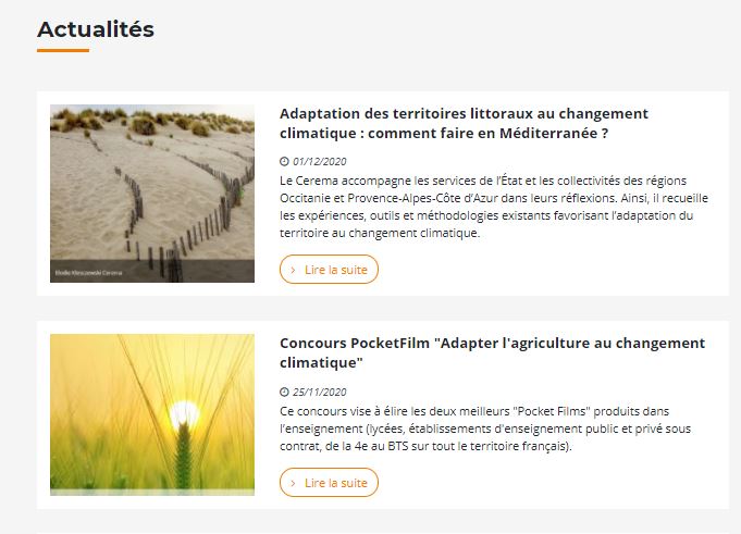 Le CEREMA – Centre d’Etudes et d’expertise sur les Risques, l’Environnement, la Mobilité et l’Aménagement, en partenariat avec l’ONERC, l’ADEME et Météo-France vient de lancer une plateforme de ressources en ligne pour s’engager dans l’adaptation au changement climatique.