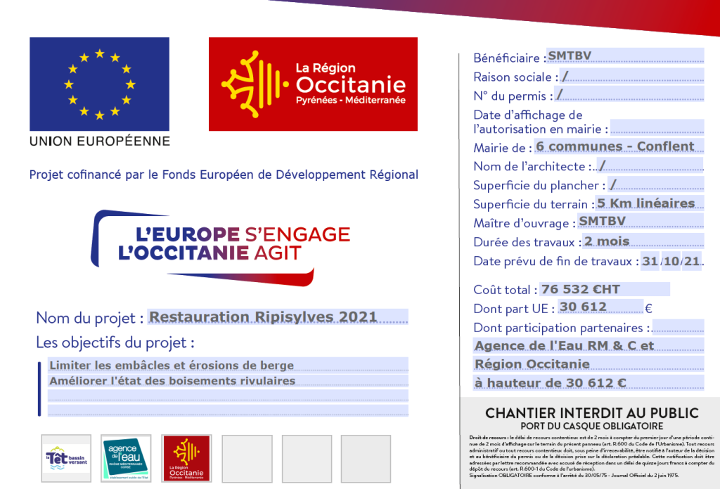 RESTAURATION ET ENTRETIEN DES MILIEUX AQUATIQUES DU BASSIN VERSANT DE LA TET - TRAVAUX RIPISYLVE 2021