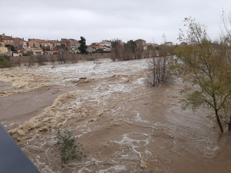 La tempête Gloria a engendré de fortes précipitations sur l'Est de la chaine des Pyrénées. La crue survenue entre le 21 et le 23 janvier 2020 est l'événement le plus fort survenu après la crue de 1940.